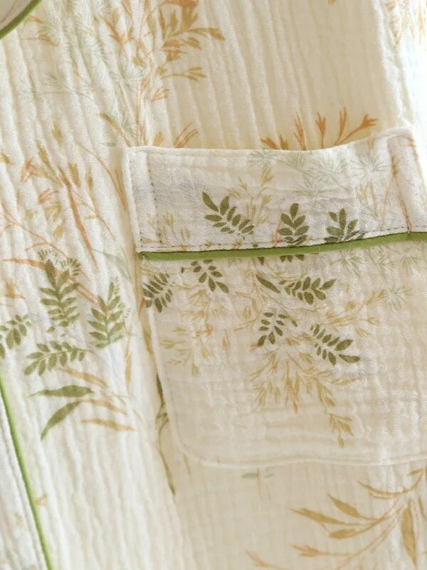 A timeless gauze cotton pajama set designed for effortless comfort and elegance. Crafted from 100% natural cotton, this set is available in two neck styles — a soft round neckline and a classic collared design — offering both simplicity and charm. Its lightweight, breathable texture makes it perfect for year-round wear, whether lounging at home or winding down for restful sleep.