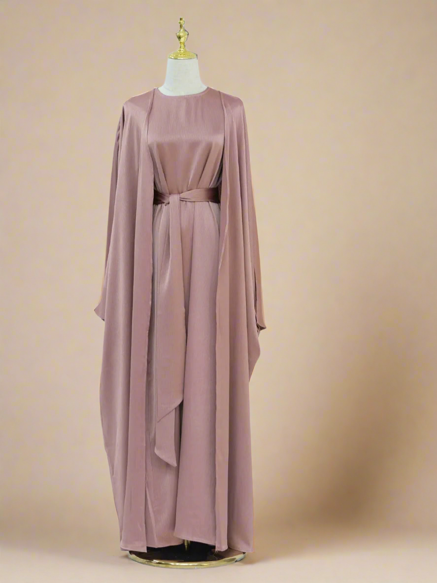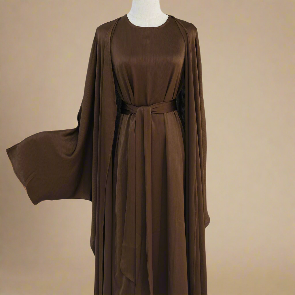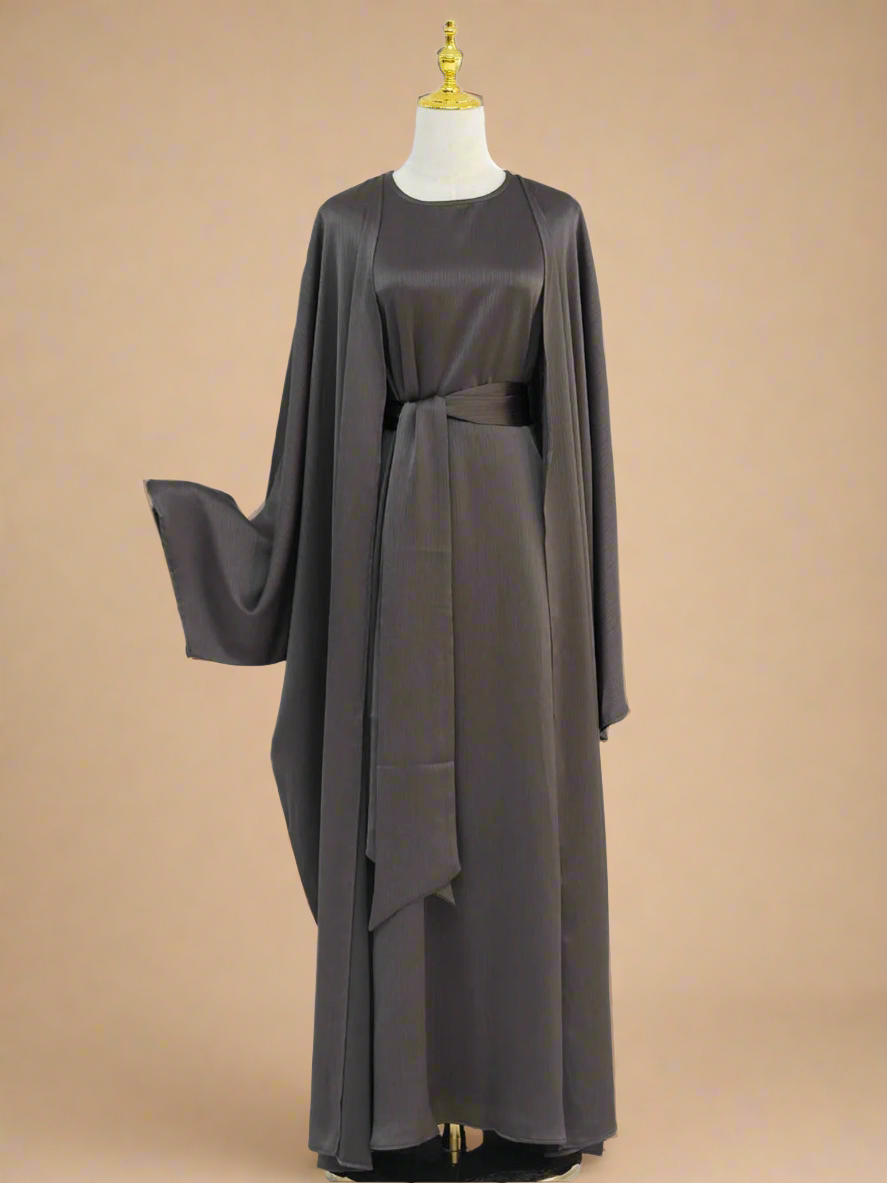 - Sleeves inner dress, belt and flowy kaftan abaya - 3 piece set