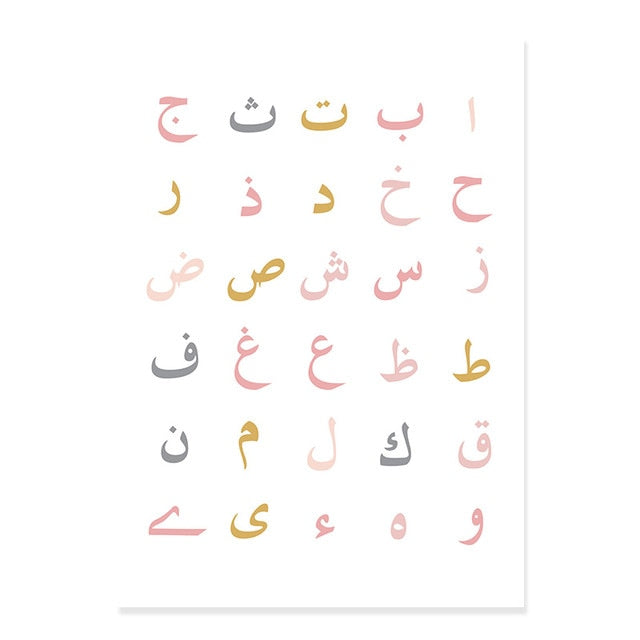 Rainbow Arabic Alphabet nursey/room decor prints- Pink