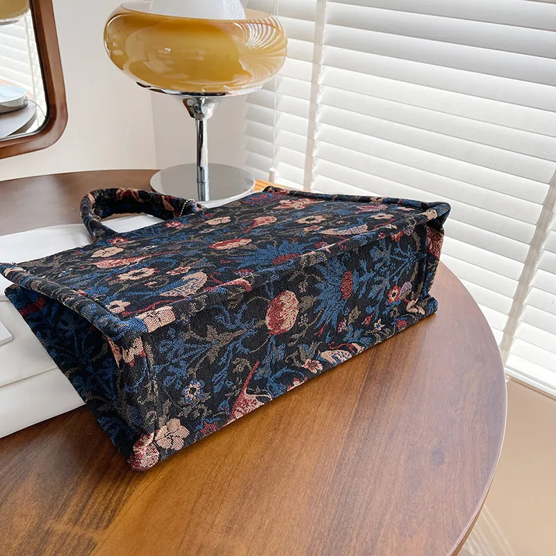 Will Stehr 1. Excellent bag in quality. There were almost no threads sticking out, and those that are not a problem to cut off. Holds shape. Pleasant in texture-my favorite tapestry. Very roomy. The size is related to the dimensions of the laptop. Has small handles.